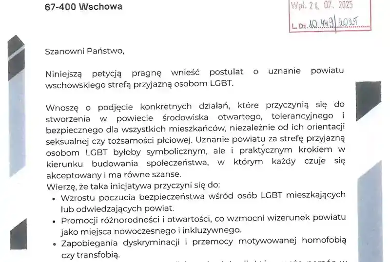 Starostwo Powiatowe we Wschowie negatywnie rozpatrzyło petycję, której celem było uznanie powiatu wschowskiego za „strefę przyjazną osobom LGBT”. W uzasadnieniu podjętej decyzji podkreślono, że działalność samorządu musi mieścić się w granicach obowiązującego prawa, a aktualne regulacje prawne nie przyznają władzom powiatowym kompetencji do podejmowania tego typu działań.